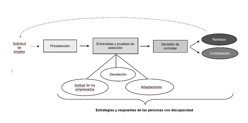 Los testimonios de los participantes en este estudio proporcionan una imagen más clara de los obstáculos que encuentran en el proceso de contratación y de la forma en que los afrontan. A partir de sus relatos, podemos ver que la preselección no parece presentar ningún reto particular para la mayoría de los participantes, mientras que las entrevistas y las pruebas de contratación constituyen una fase central del proceso: es precisamente en esta fase cuando el dilema de revelar la discapacidad, las actitudes de los empresarios y la cuestión de las adaptaciones adquieren todo su significado. Estas cuestiones pueden ser definitorias en la decisión final de contratar.