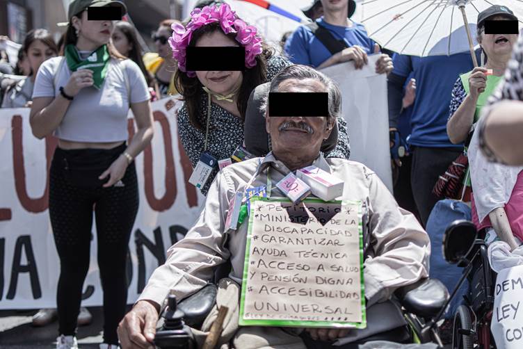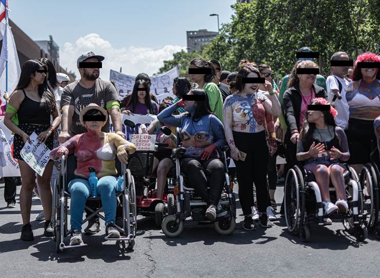 Algunas autoras (Beasley, 2020; Mann, 2018) han señalado que las marchas como forma de protesta son instancias excluyentes y capacitistas, al funcionar bajo supuestos normativos al servicio de una capacidad corporal obligatoria o la representación de un cuerpo ideal. Las personas con discapacidad no solo marchan, poniendo en tensión estas modalidades tradicionales de protesta, sino que denuncian con sus cuerpos y en la propia experiencia de la manifestación las necesidades de accesibilidad, de asistencia y cuidado mutuo que emergen en ellas (López-Radrigan, 2023). Esta forma de “poner el cuerpo” tiene un potente poder performativo y visual que politiza las diferencias corporales (Castelli Rodríguez, 2020).